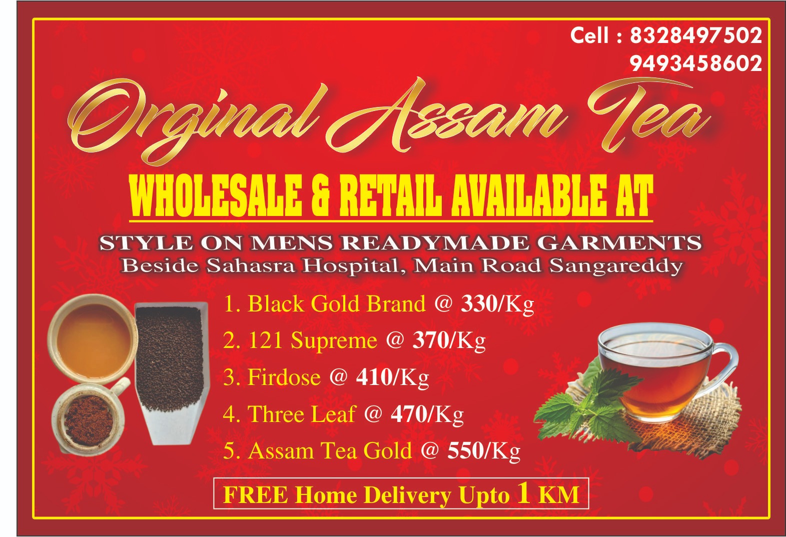 Black Gold Brand - 330/Kg 121 Supreme - 370/Kg Firdose - 410/Kg Three Leaf - 470/Kg Assam Tea Gold - 550/Kg FREE Home Delivery upto 1KM